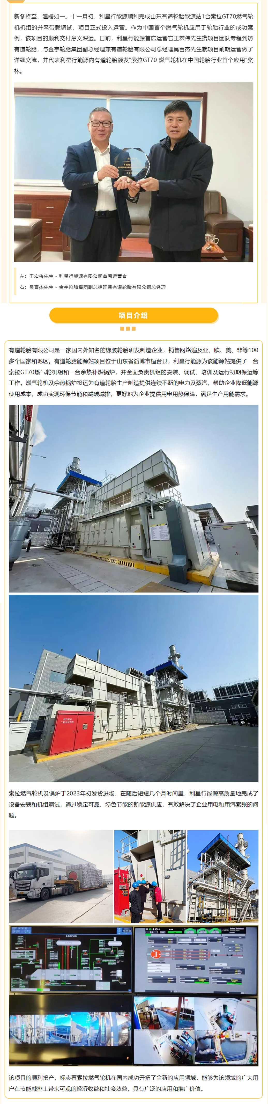 国内轮胎行业首个燃气轮机能源项目正式投运