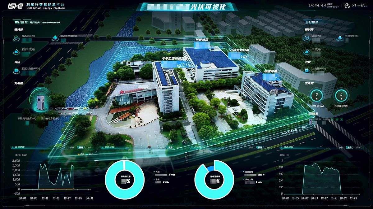 通过710公海寰宇能源自主研发的智慧管理平台,以高空俯视视角呈现每幢楼的光伏装机容量、年碳排量、年碳减排以及年单位面积碳减排等数据。按照年均73.8万度绿电测算,可实现年碳减排746+吨,年减标煤220+吨,相当于每年种植600+棵树。平台监控及测算指标充分体现该项目将有力促进当地清洁能源的利用,助力可持续发展目标的达成,为未来更多同类项目的开展打下良好根基。